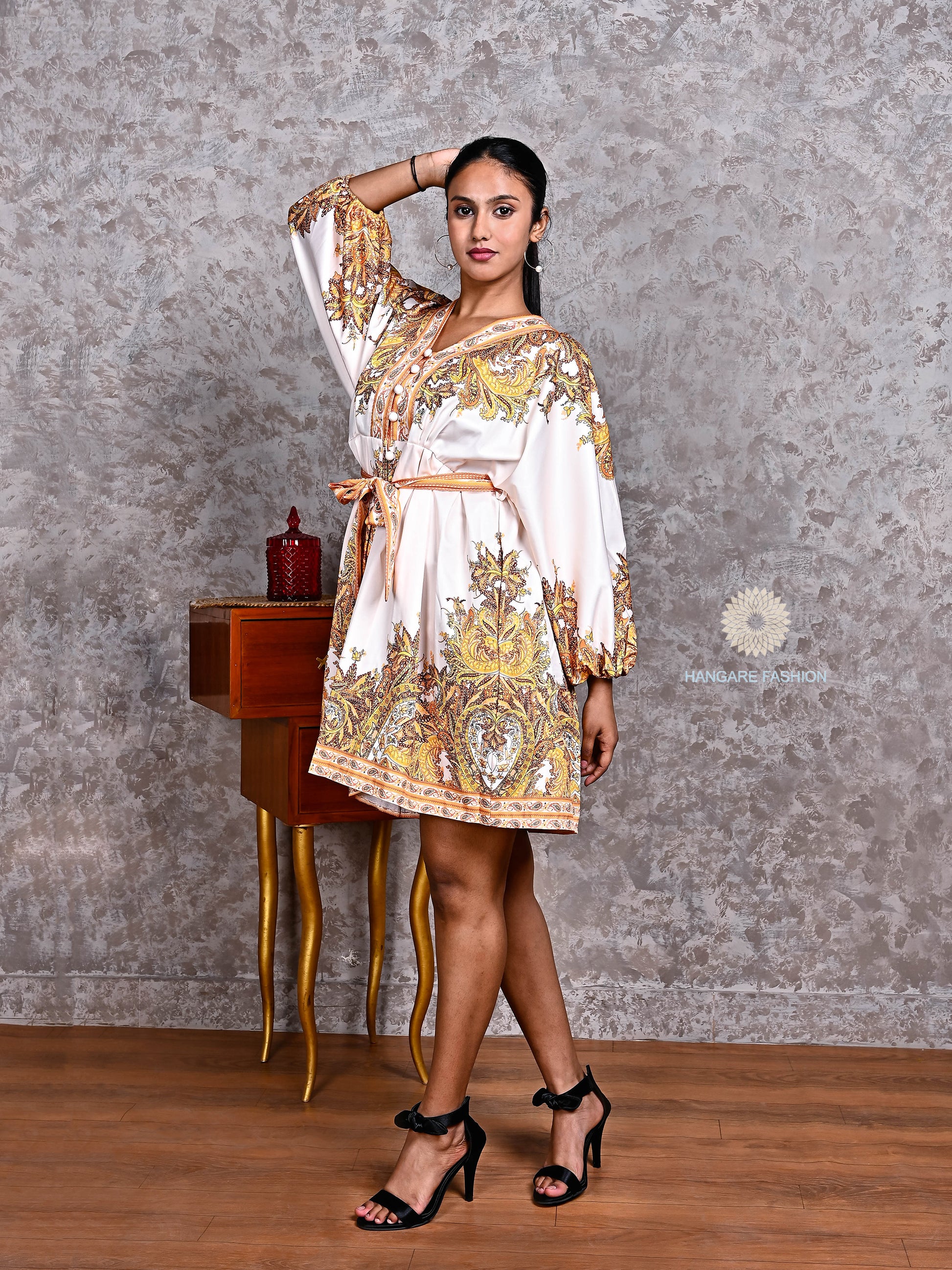 Ornate Baroque Print – Intricate gold-toned motifs with paisley detailing that evoke a regal aesthetic.