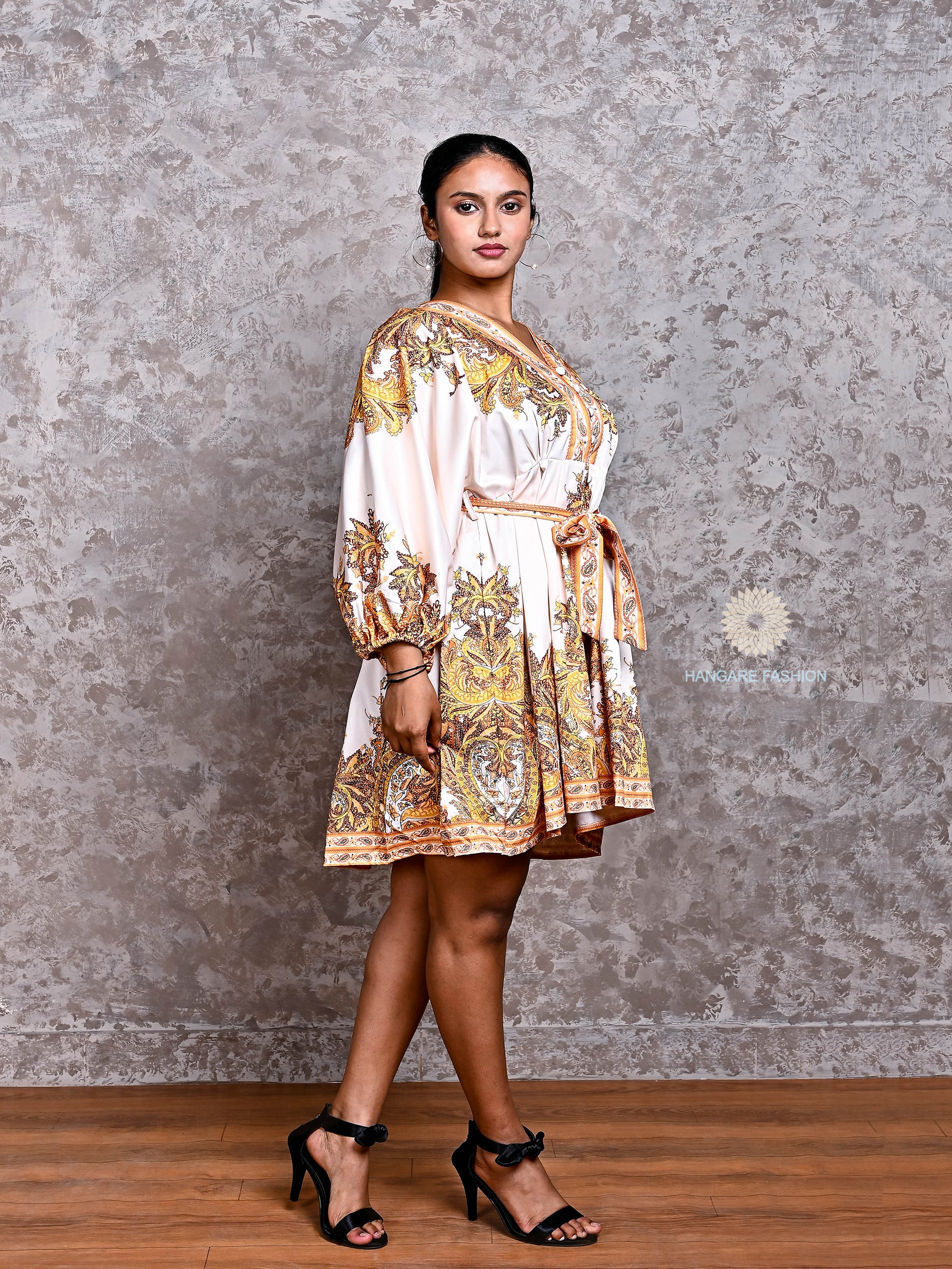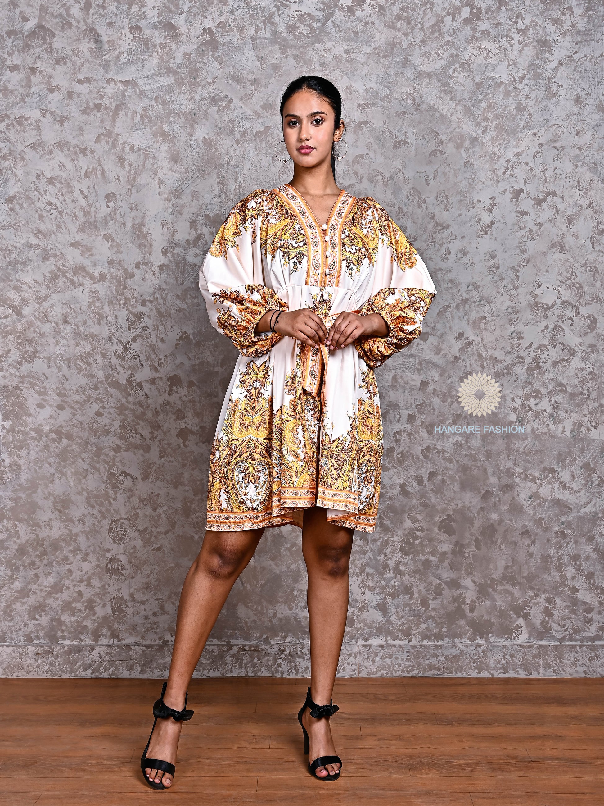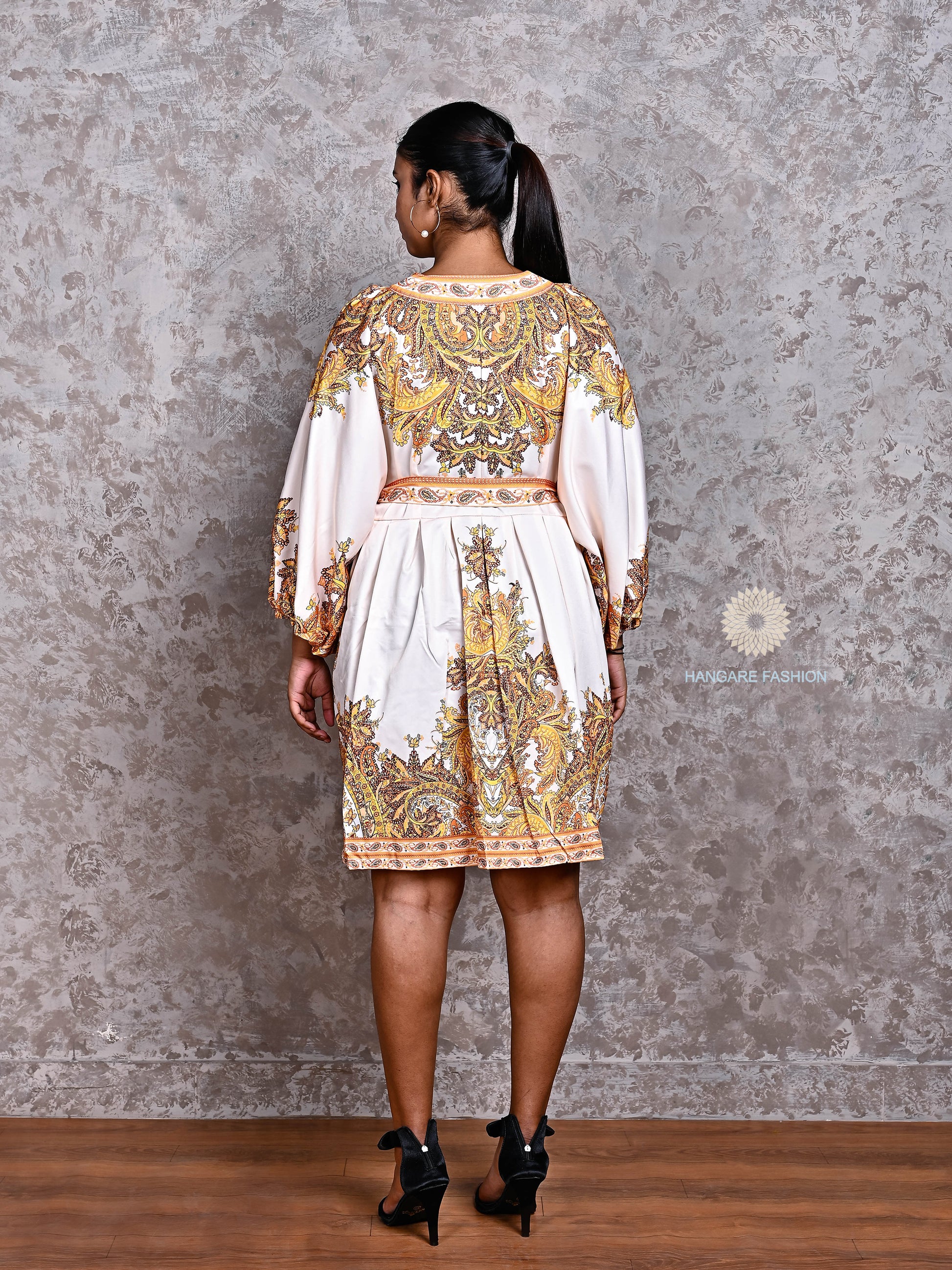 Statement Sleeves – Voluminous balloon sleeves with gathered cuffs add a dramatic, stylish flair.