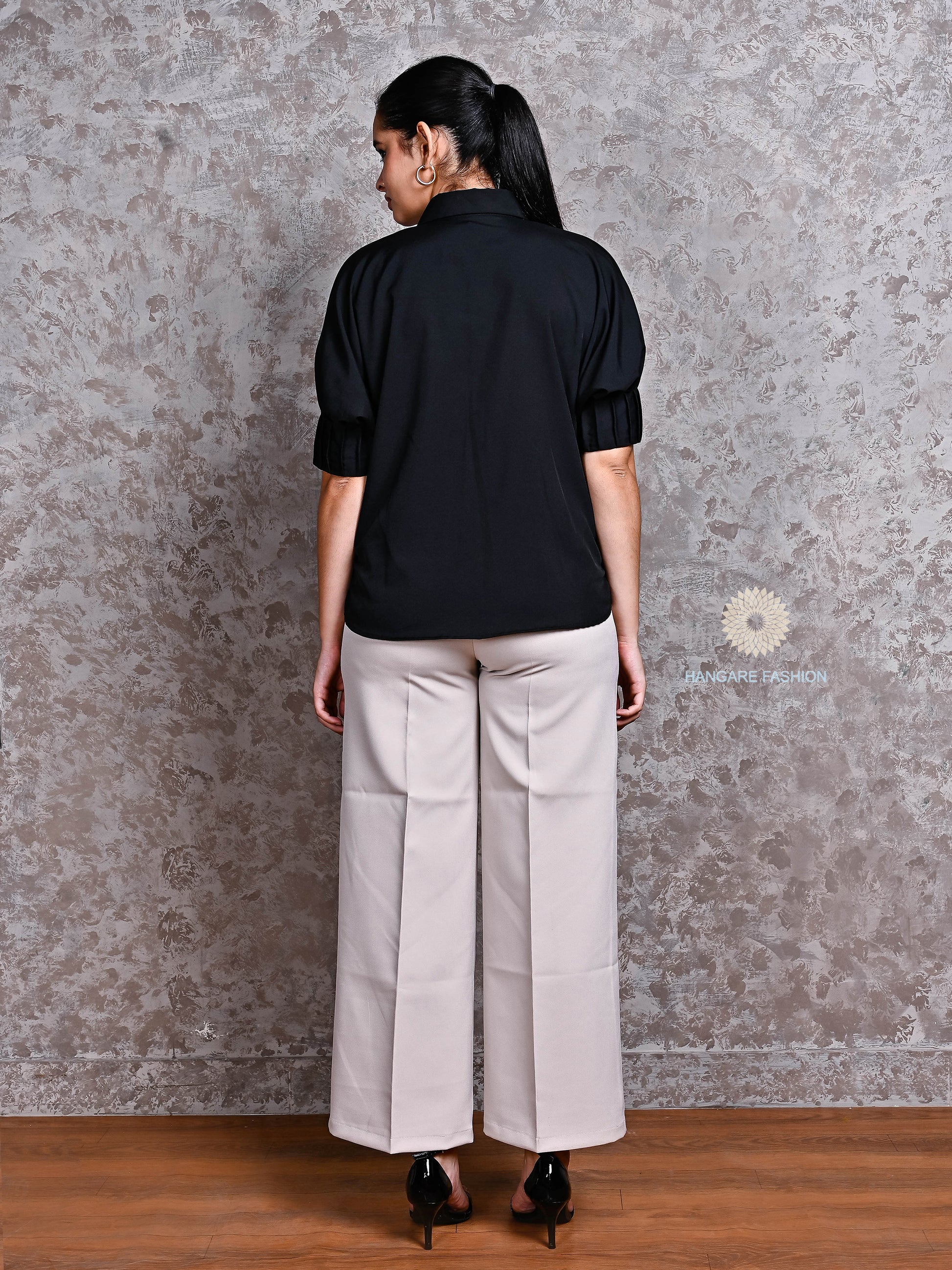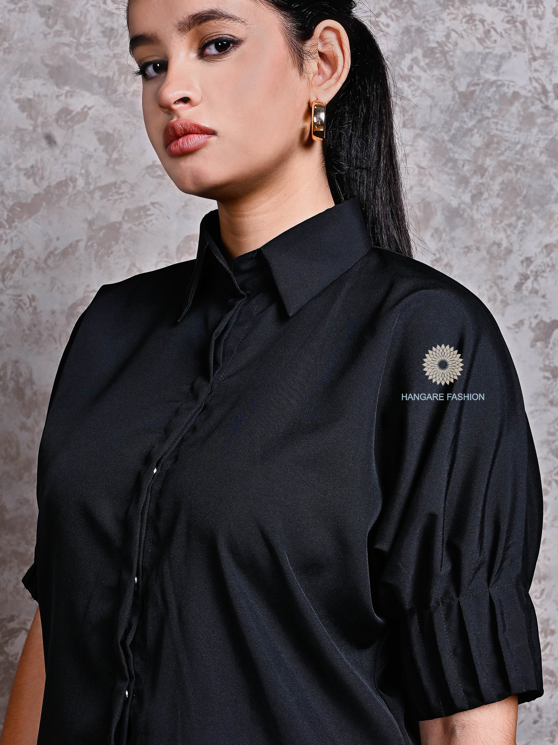Black Puff Sleeve Shirt – Shirt Crepe Elegance