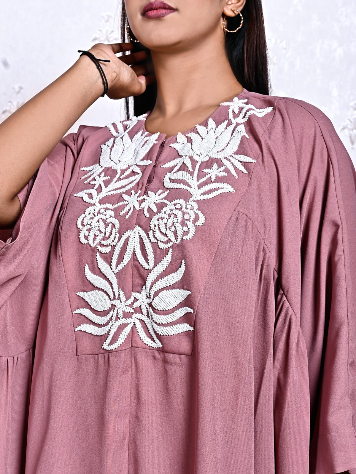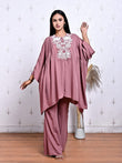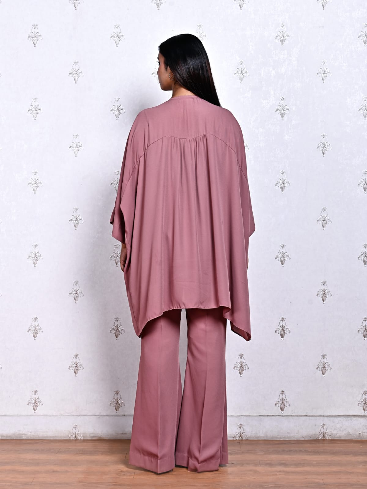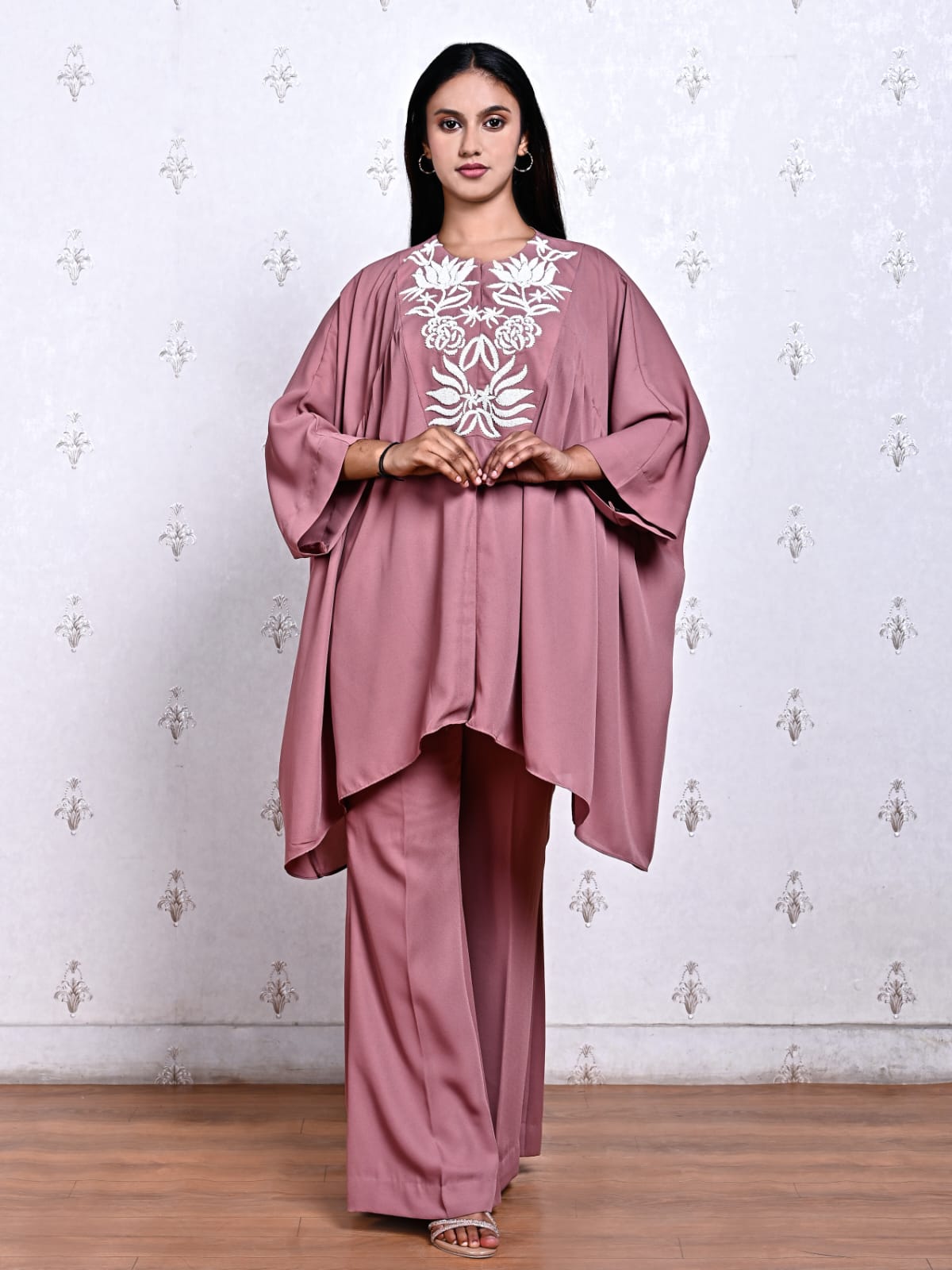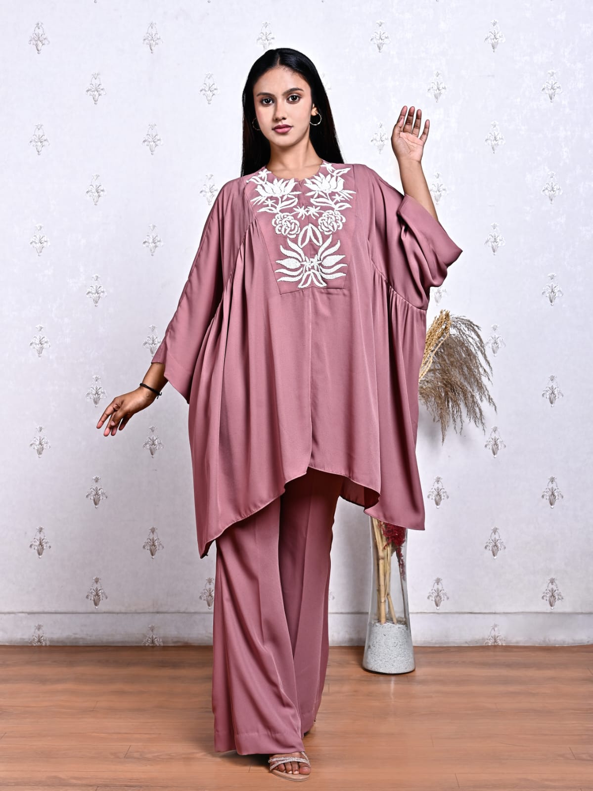 Blush Pink Crepe Coord Set with Lotus Pearl Hand Embroidery