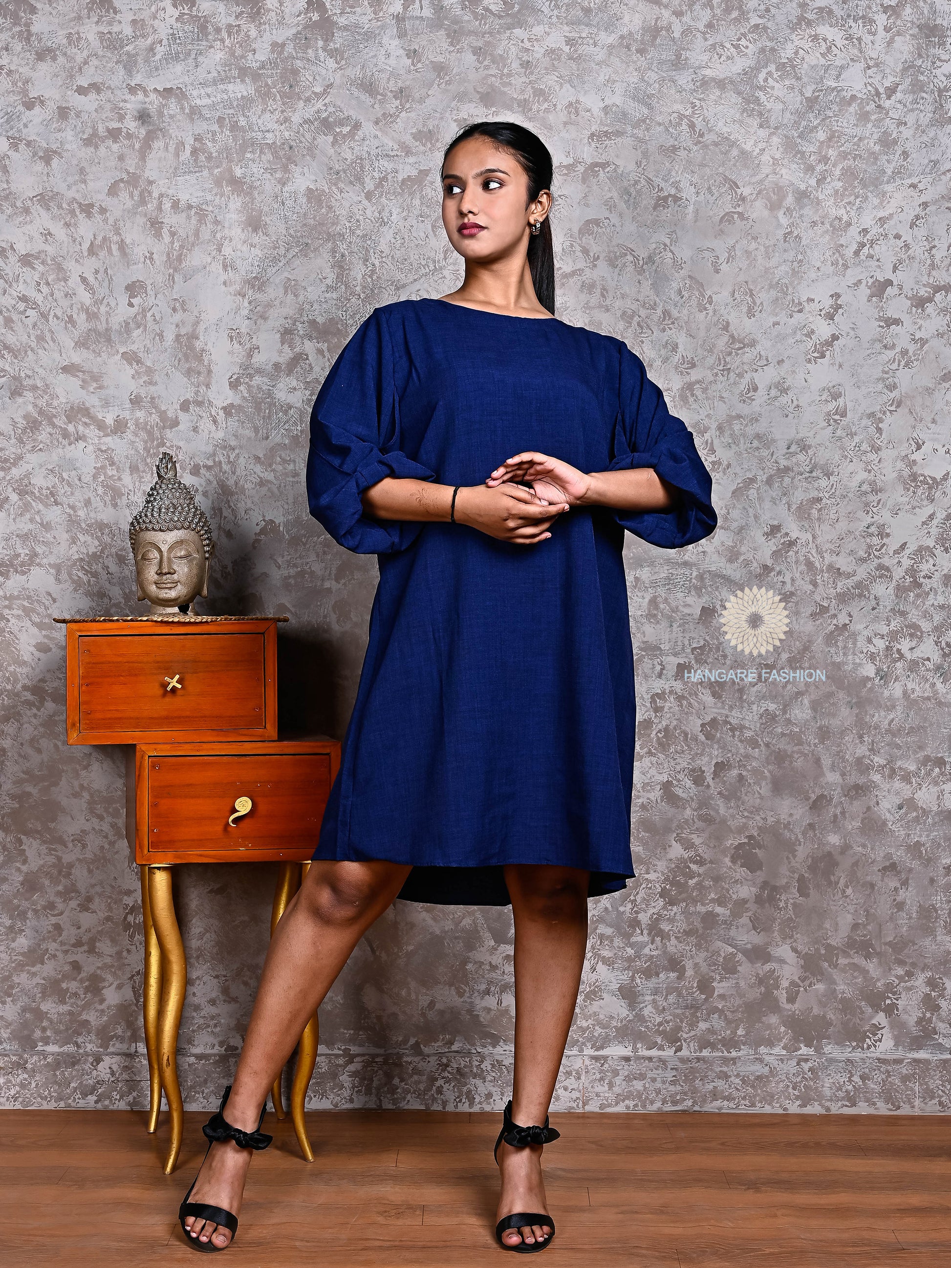 Stay stylish and comfortable with this medium-length Western dress crafted from premium blended cotton. Designed with a relaxed silhouette and soft puffed sleeves, it's the perfect outfit for effortless everyday style. Dress it up with heels or keep it casual with flats—this versatile piece is a must-have for your modern wardrobe.