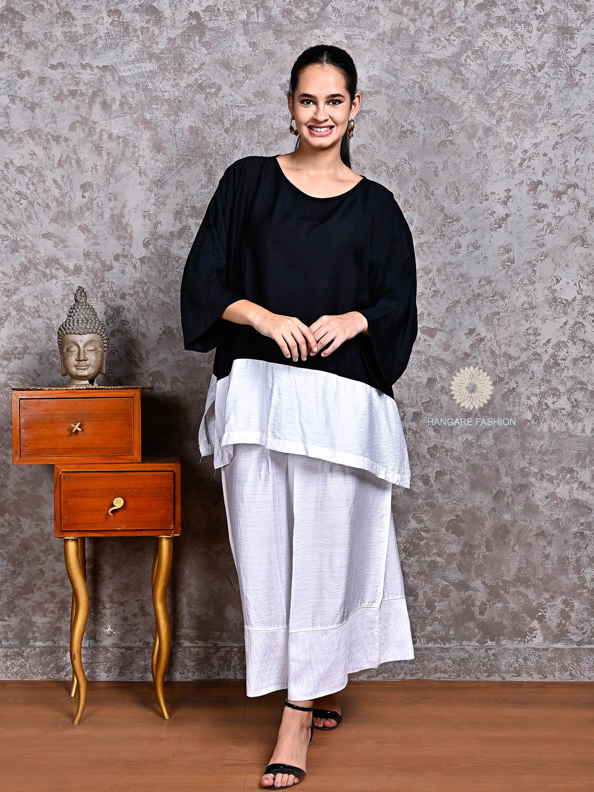 Contrast Cotton-Linen Coord Set – Easy Grace in Black & White