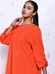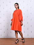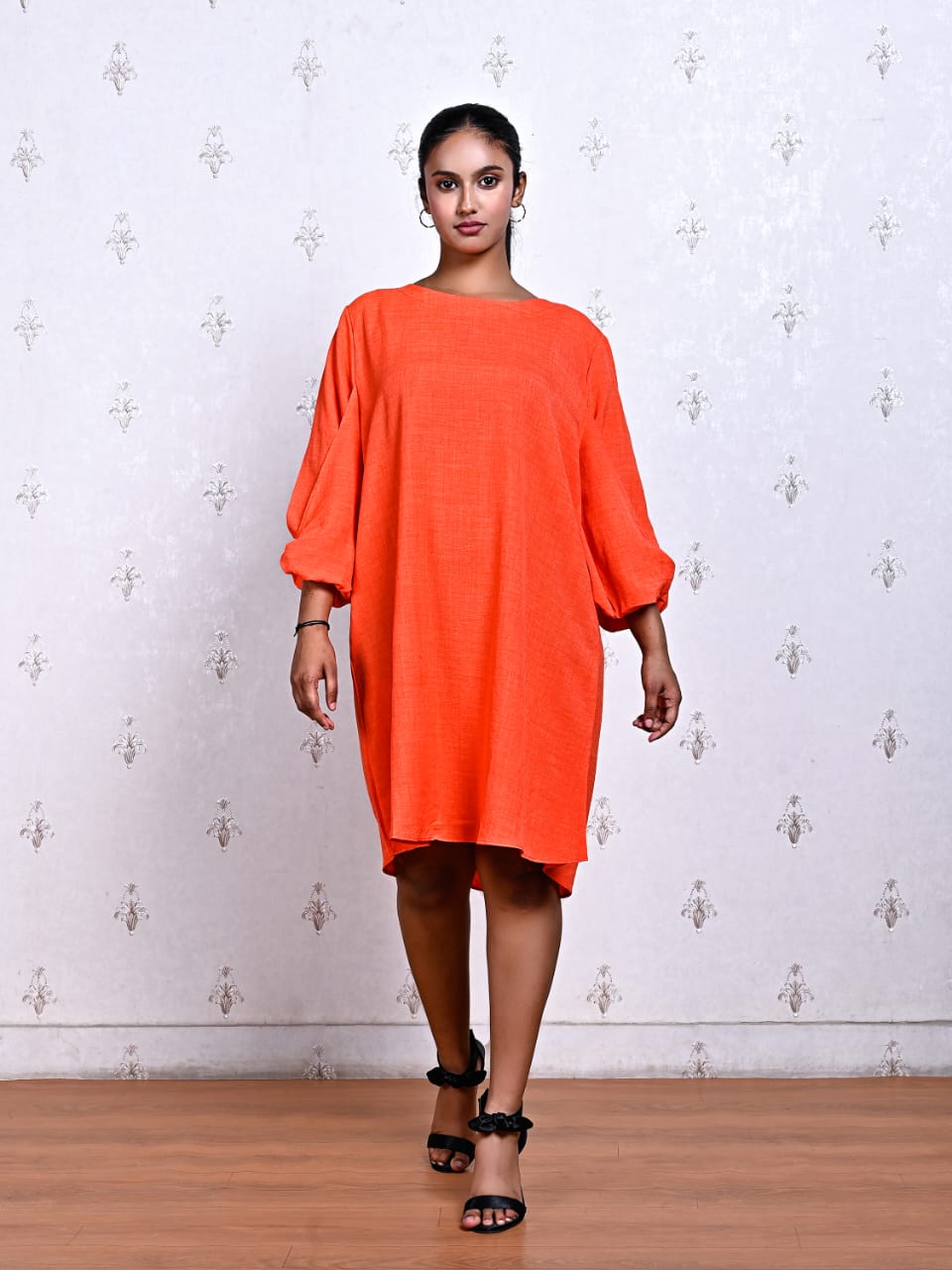 Bright Orange Balloon Sleeve Dress in Blended Cotton