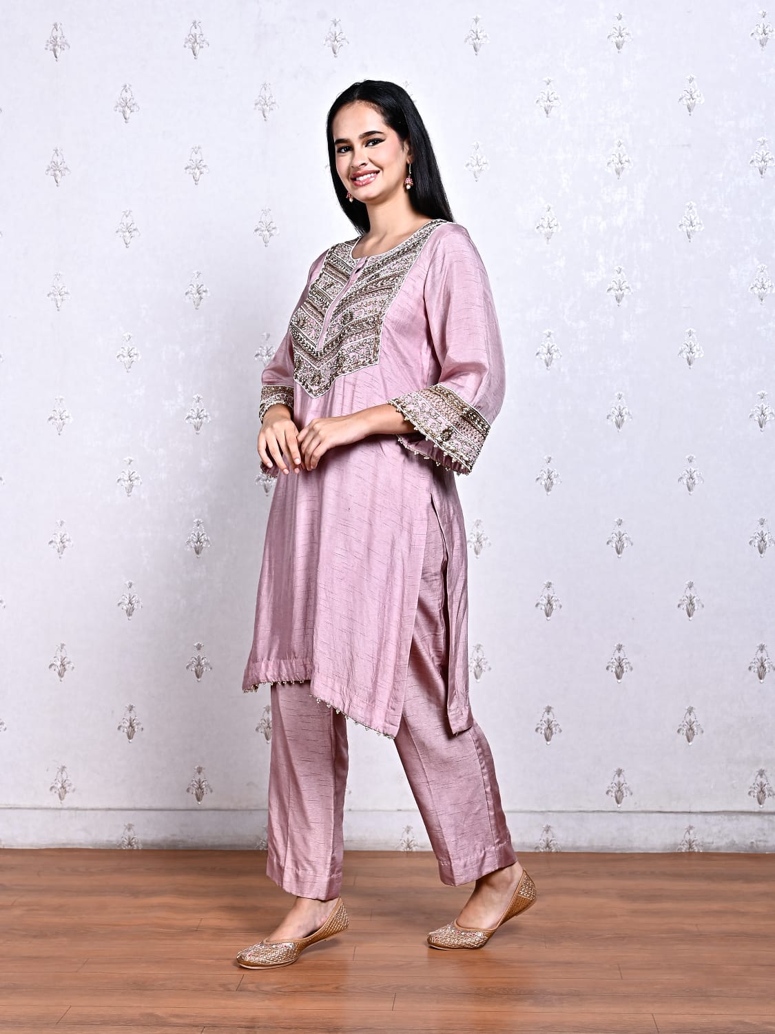 Elegant Mauve Hue: The soft mauve color enhances the overall look, giving it a sophisticated and feminine charm.