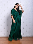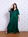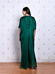 Emerald Green Dola Silk Kaftaan Style Gown with Embroidered Lace