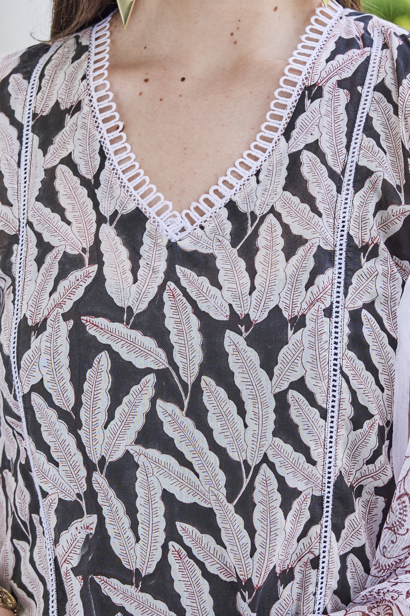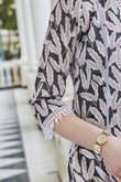 A seamless blend of Rajasthan's heritage printing techniques and modern silhouettes, this kurta is a true expression of style and artistry. Crafted from soft muslin, it offers a dream-like fit and comfortable feel throughout the day. Adorned with meticulously hand-blocked floral vine motifs, accented by silver rogan imprints, it's a stunning choice for both casual and festive occasions. Style it with matching pants for a coordinated look or go bold with contrasting bottoms!