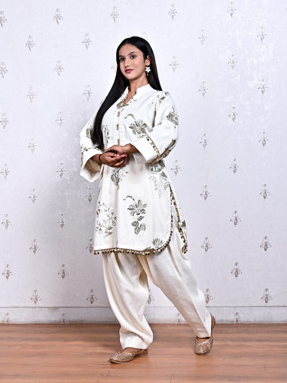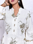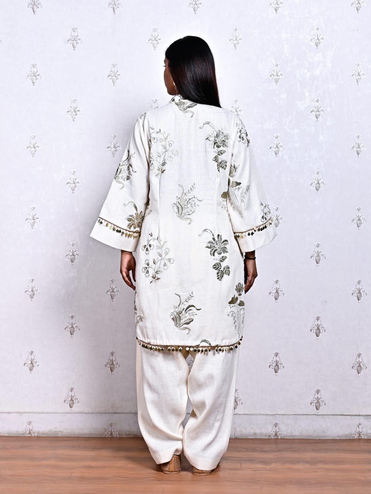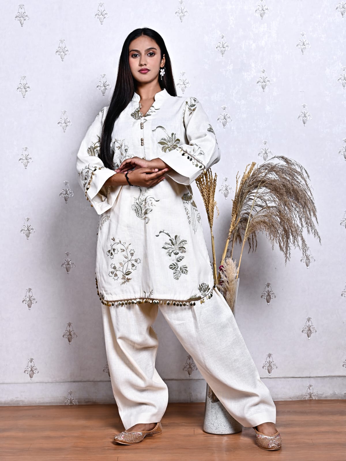 Ivory Cotton Linen Kurta Set with Elegant Pitta Embroidery