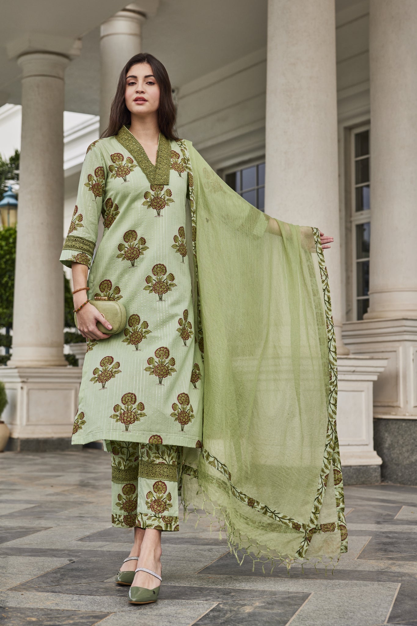 Enhance your attire with our Kota Cotton Dupatta featuring printed borders that add a touch of timeless charm. Crafted from breathable cotton, this accessory effortlessly complements your outfit, making it a versatile addition to your wardrobe.