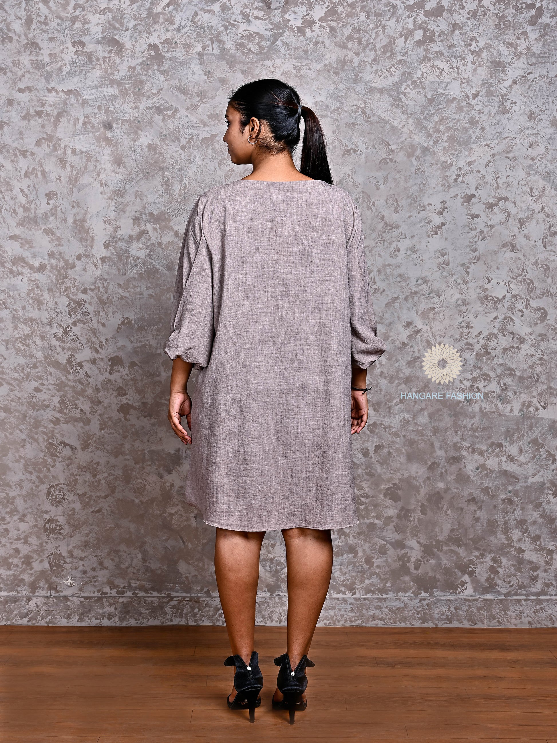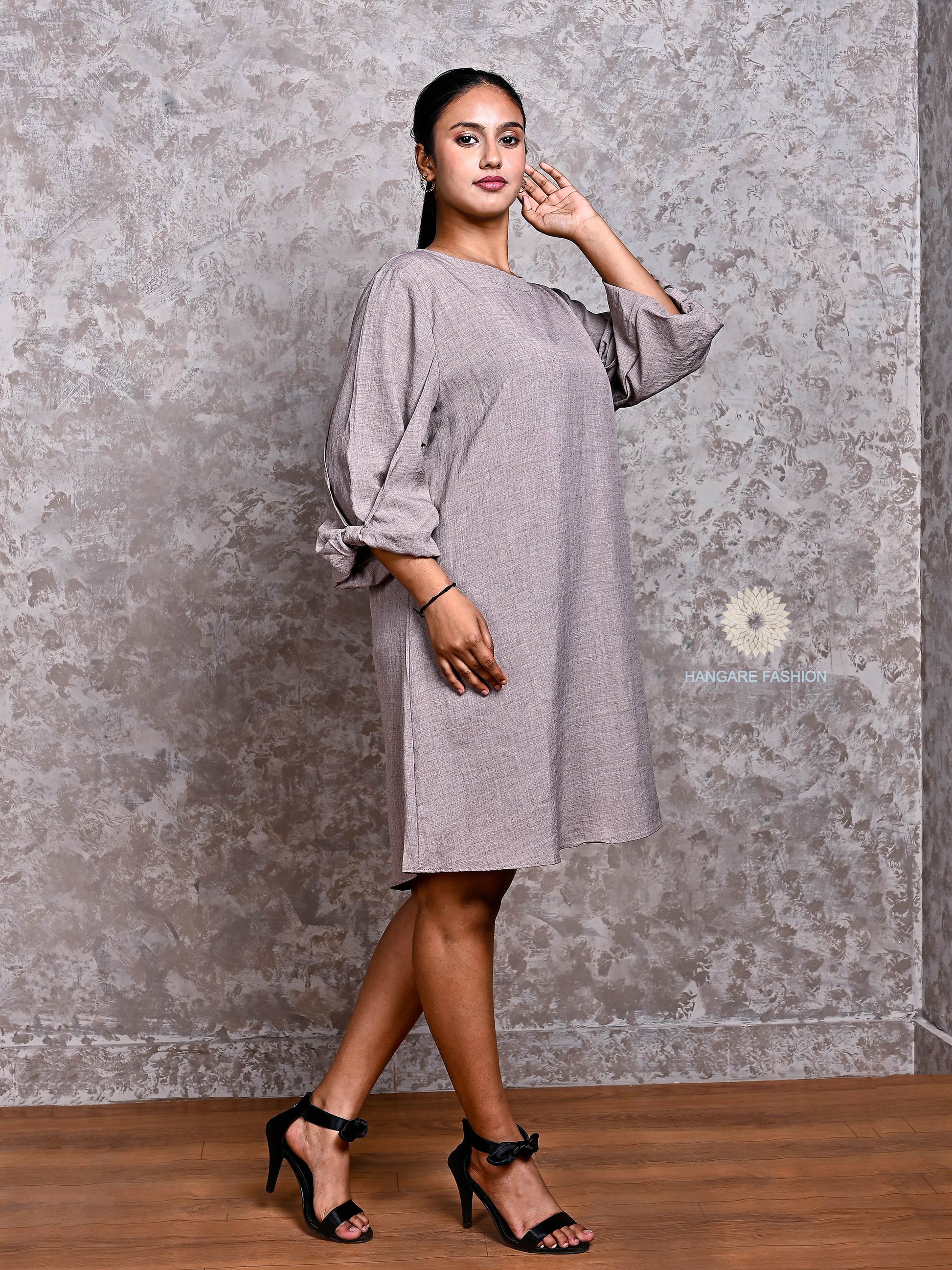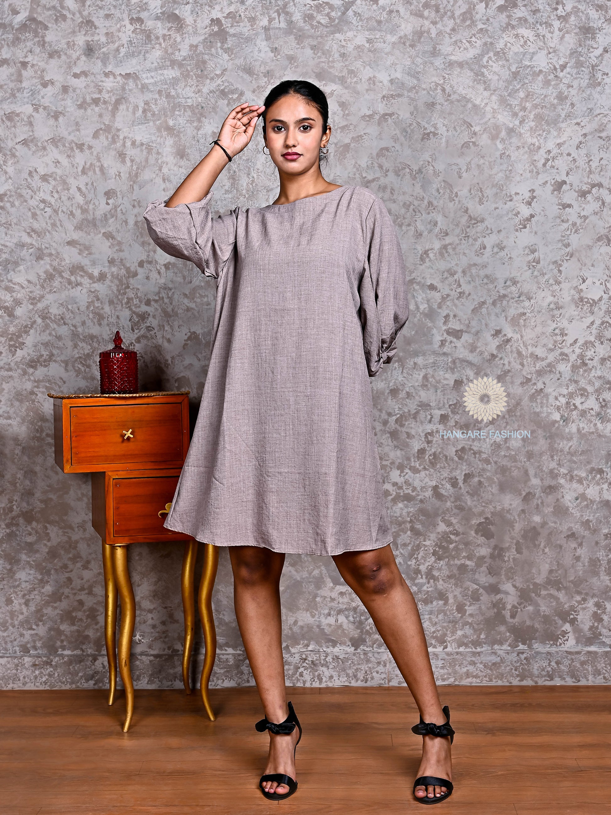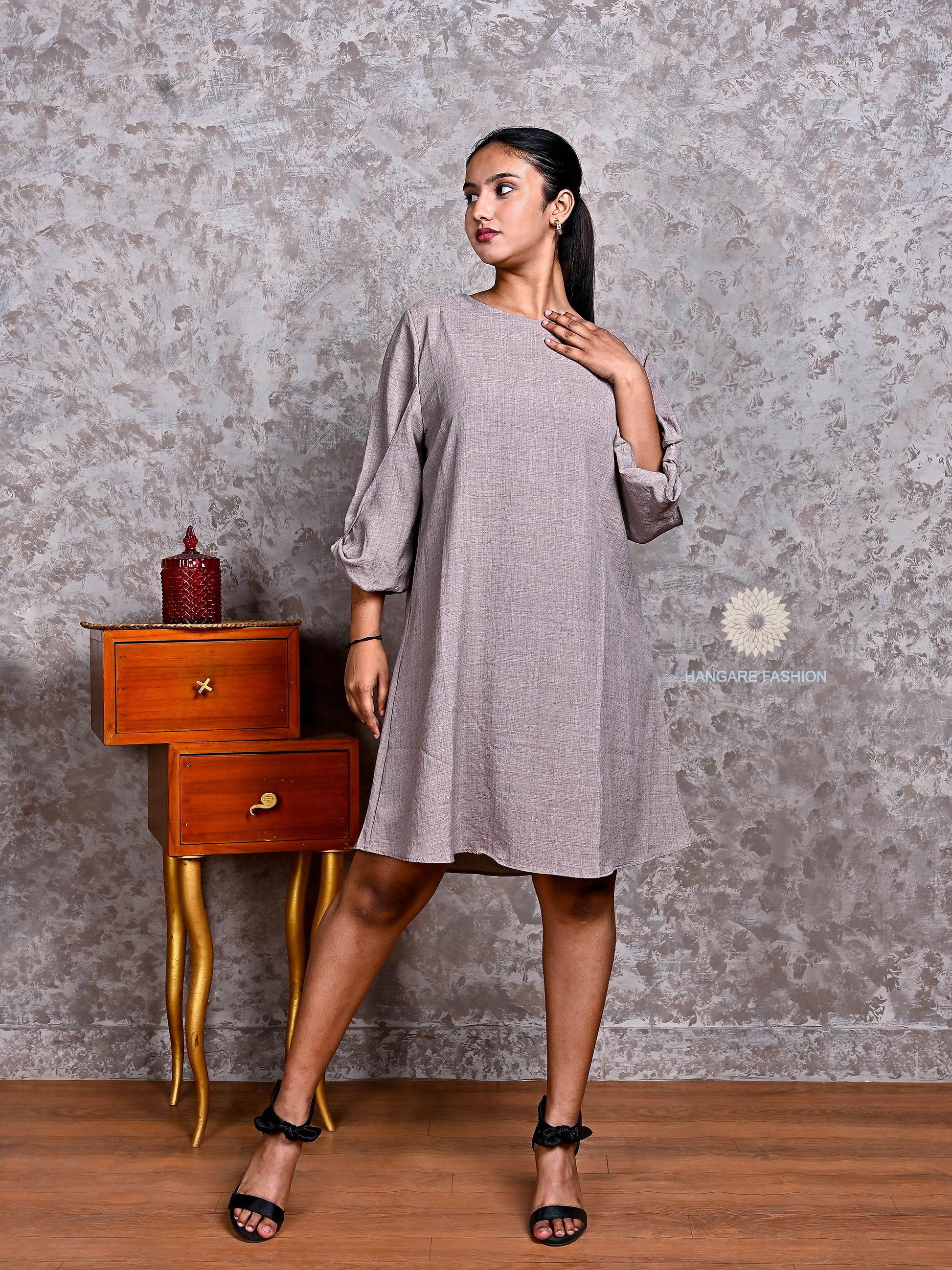 Lilac Relaxed-Fit Tunic Dress in Cotton Blend with Semi-Crepe Finish