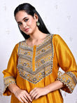 Mustard Monga Silk Embroidered Kurta Set with Handwork Detailing