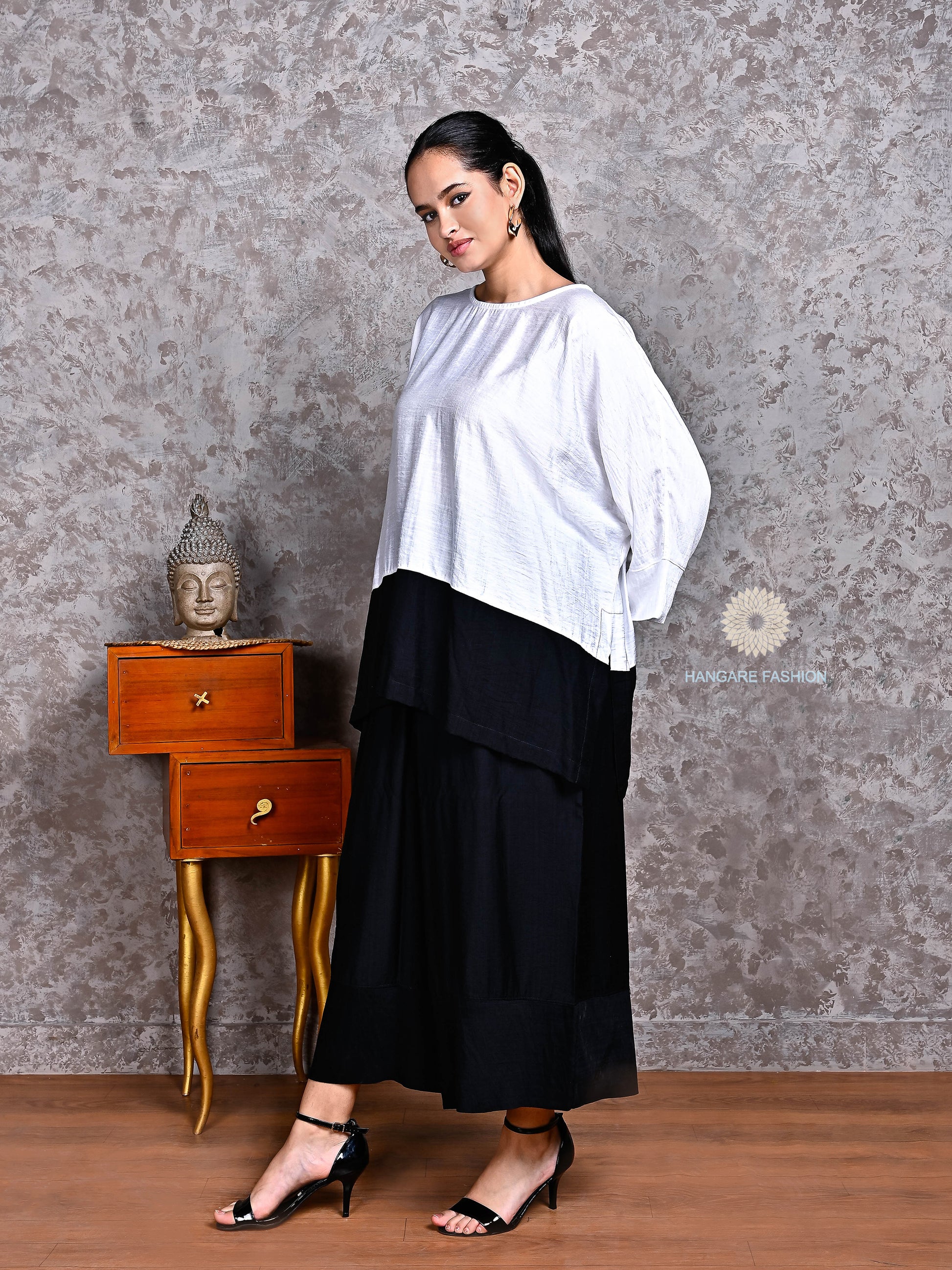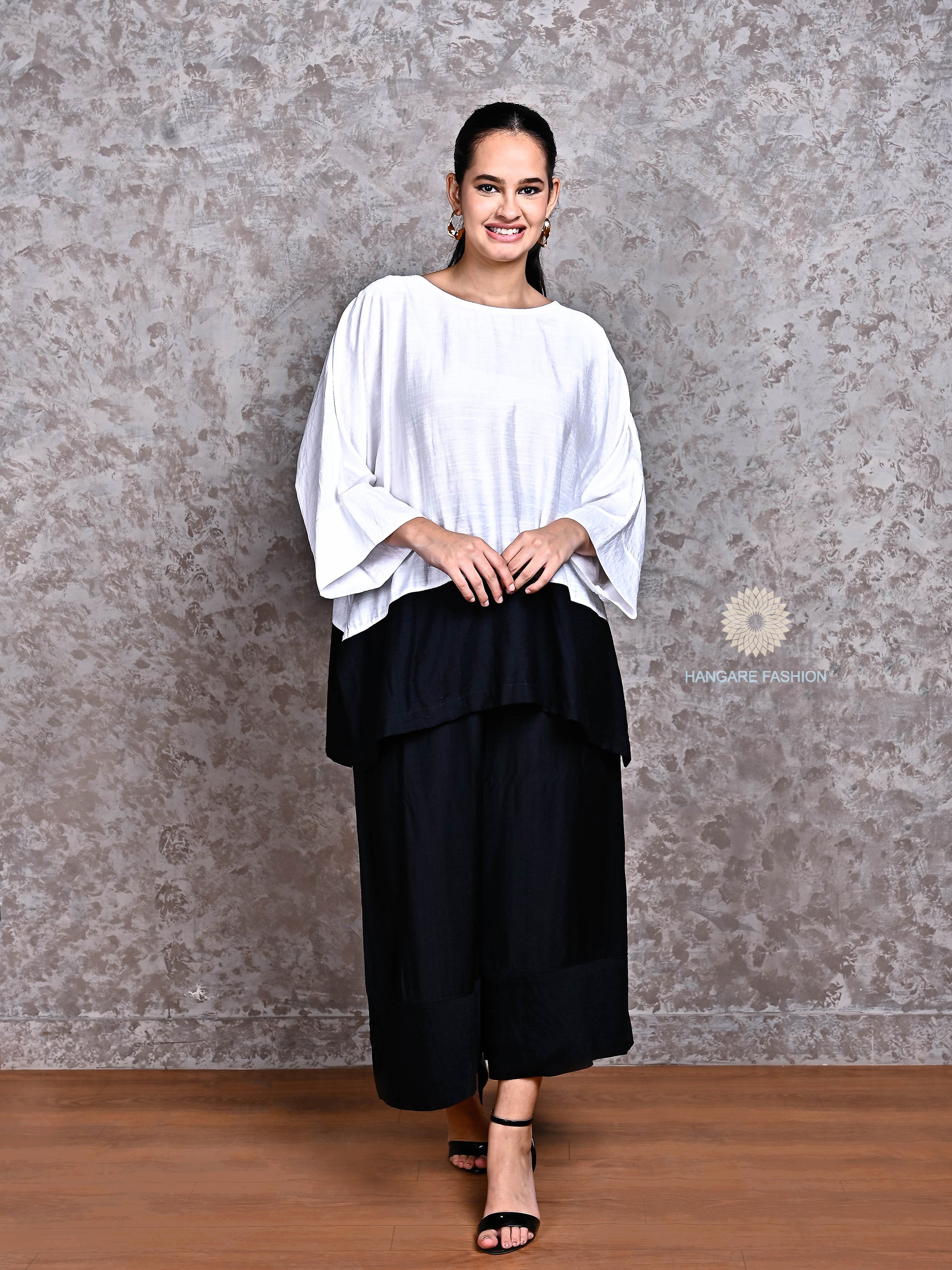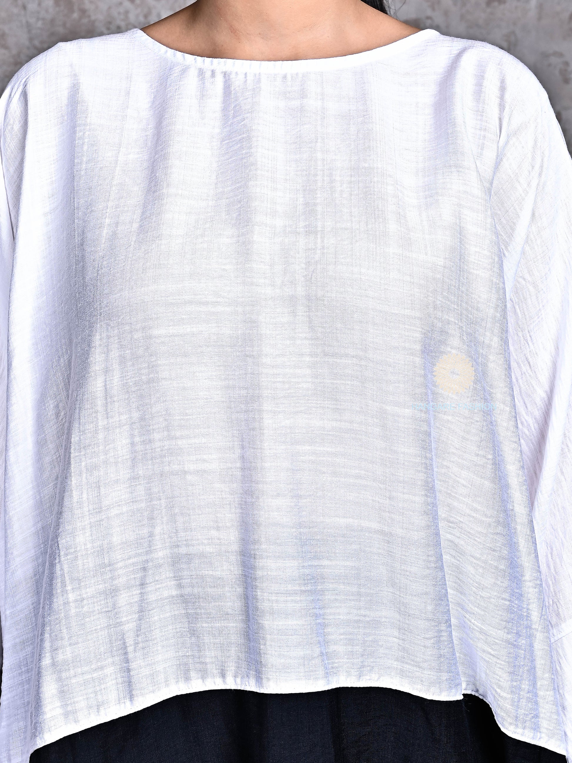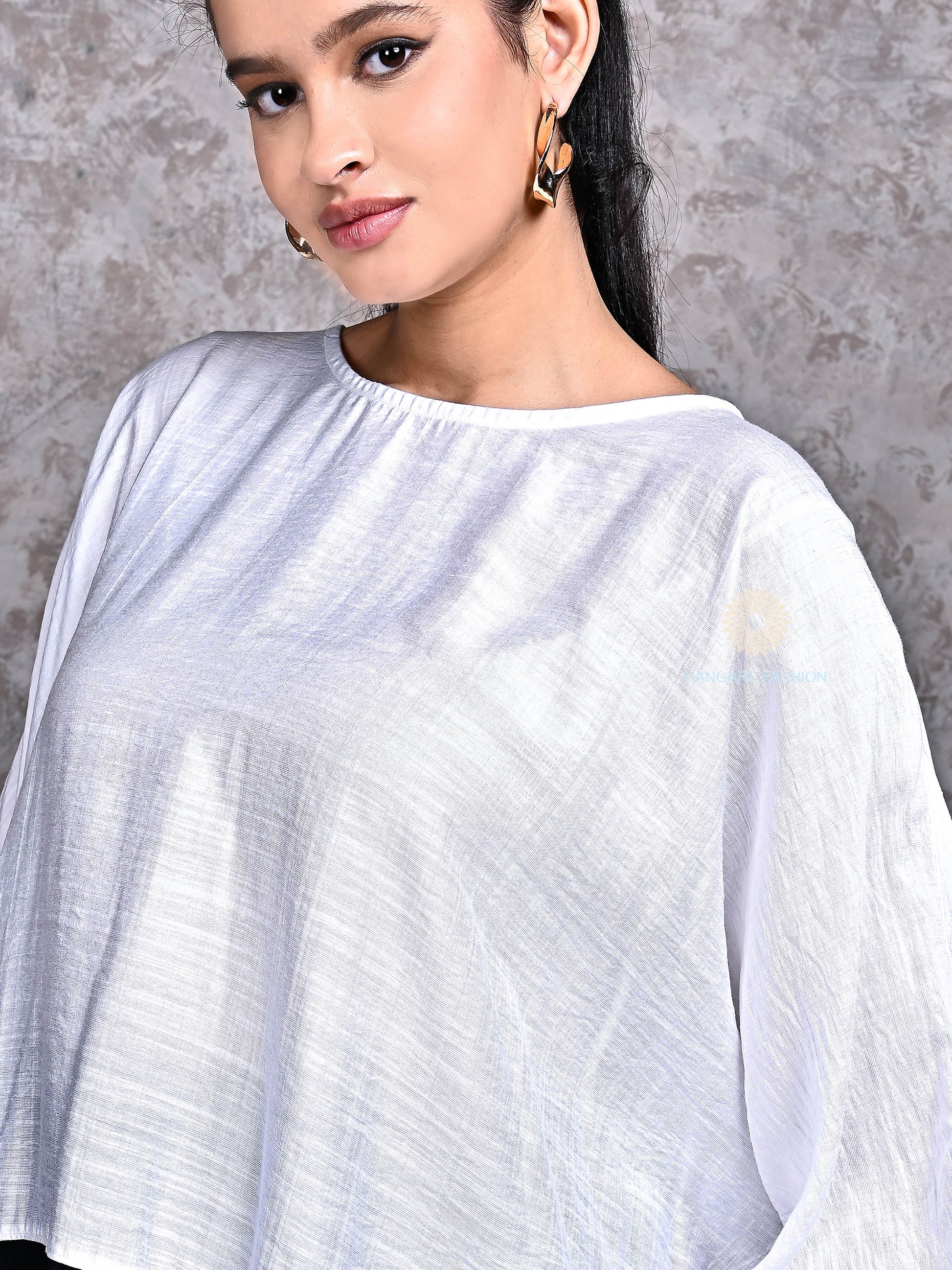 Relaxed Fit Top – Flowy white top with drop shoulders and wide sleeves for a breezy, contemporary look.