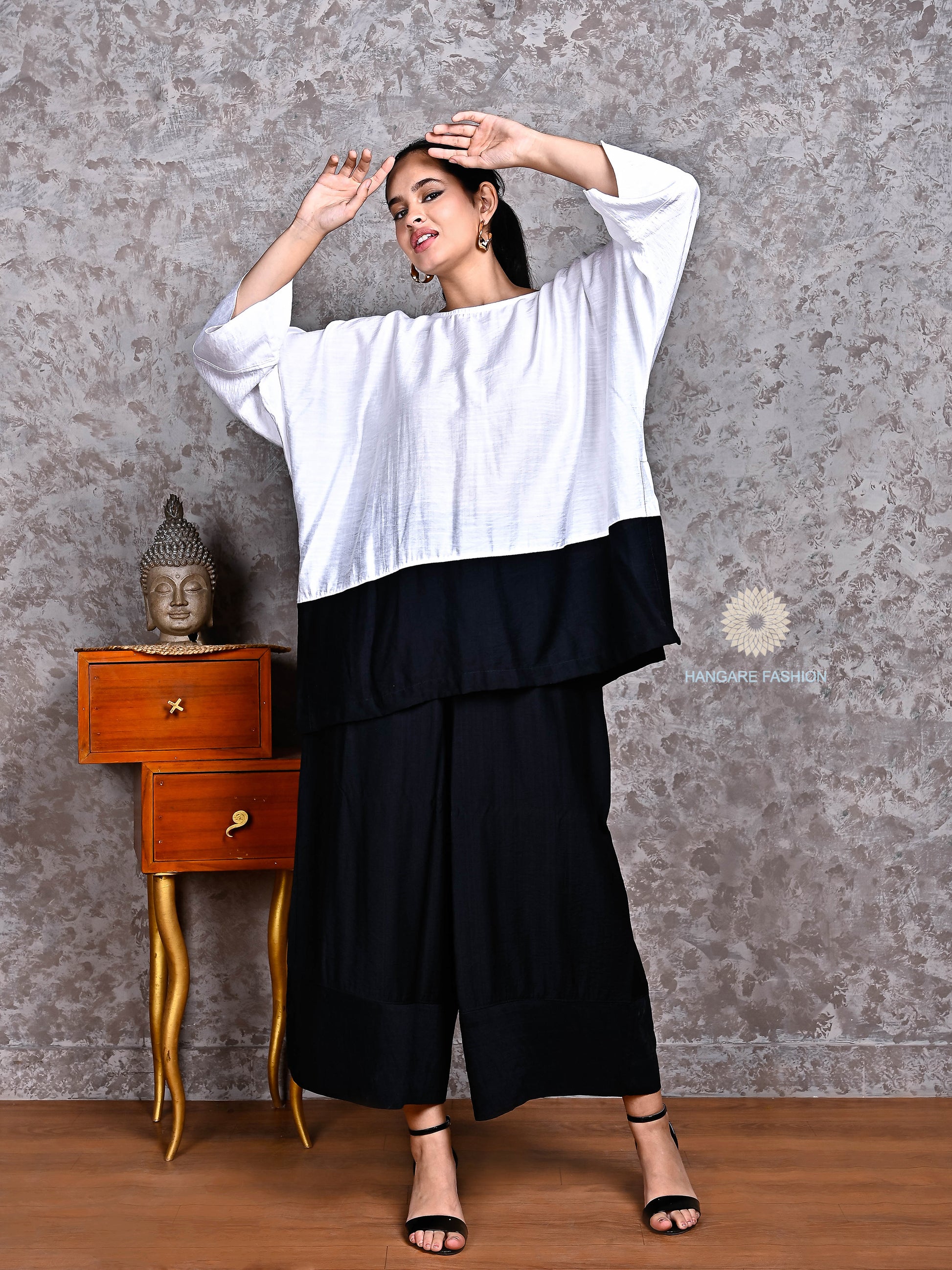 Monochrome Cotton-Linen Coord Set – Relaxed Elegance in Black & White
