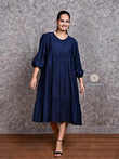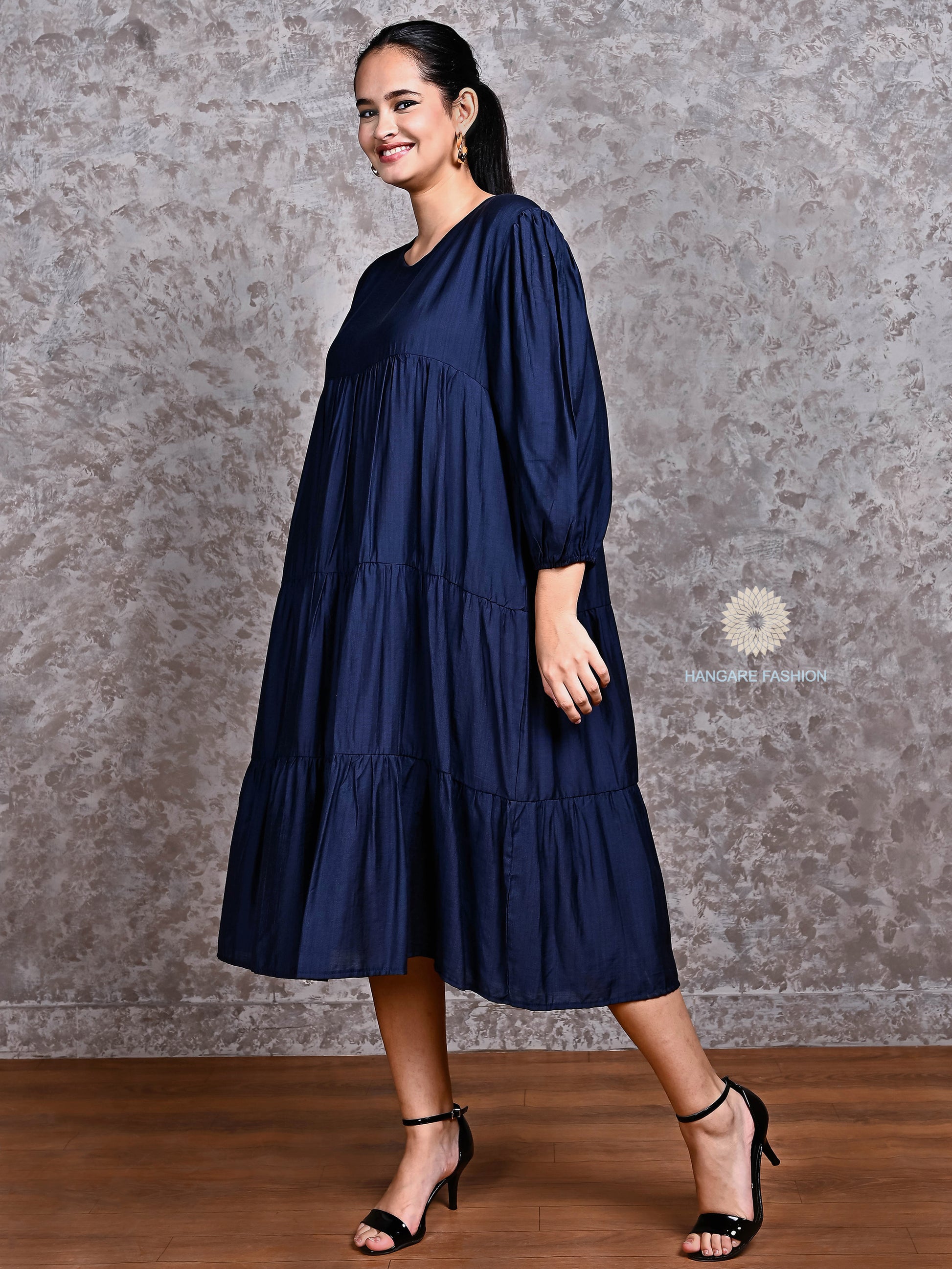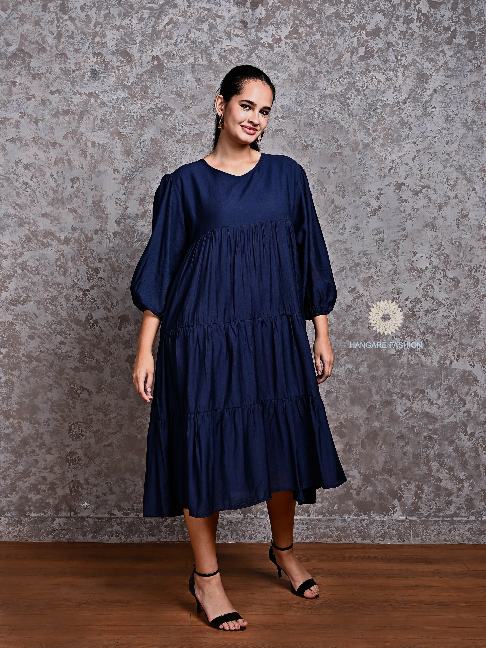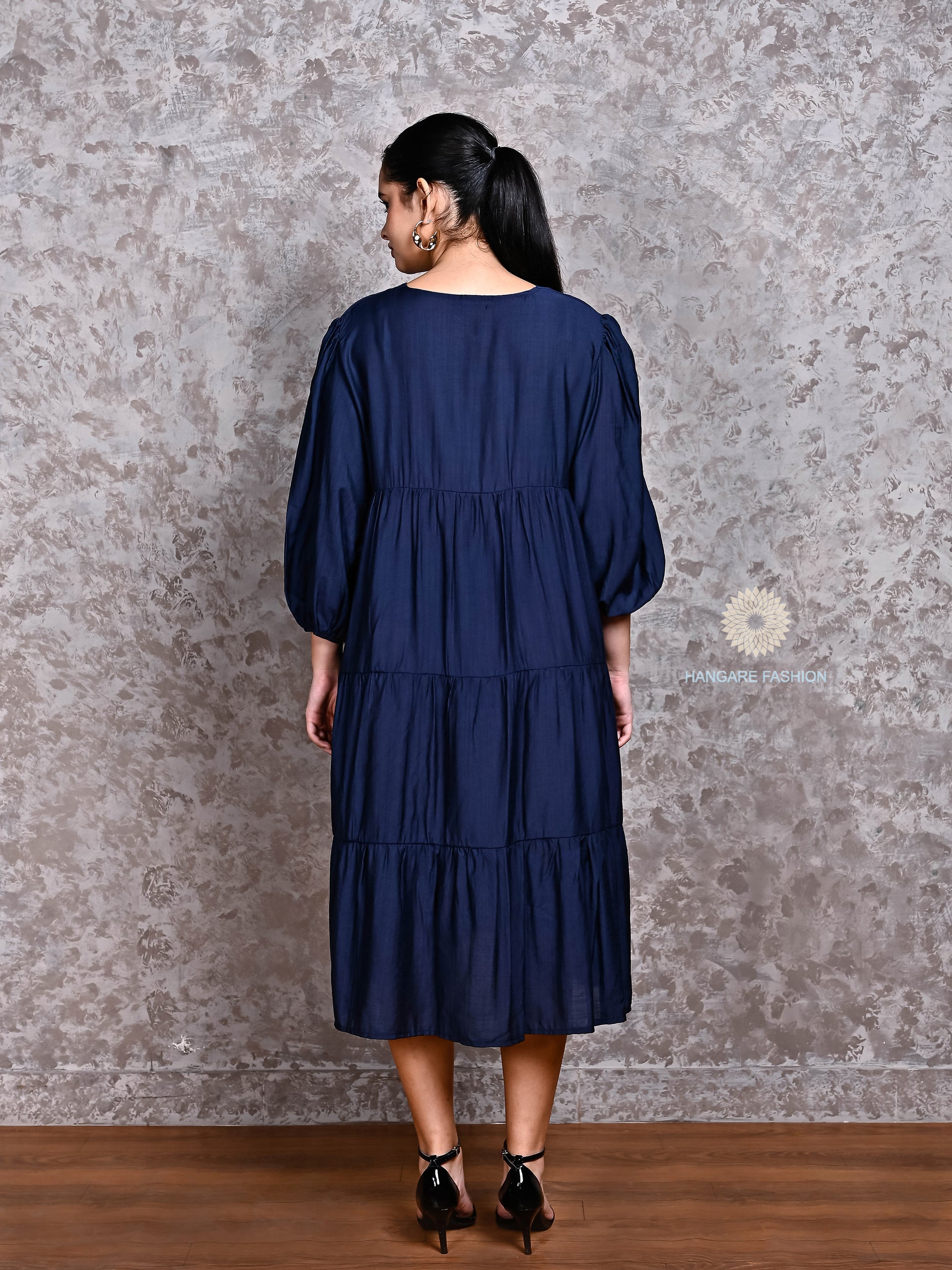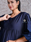 Navy Blue Semi-Crepe Tunic Dress in Cotton Blend – Relaxed Western Silhouette