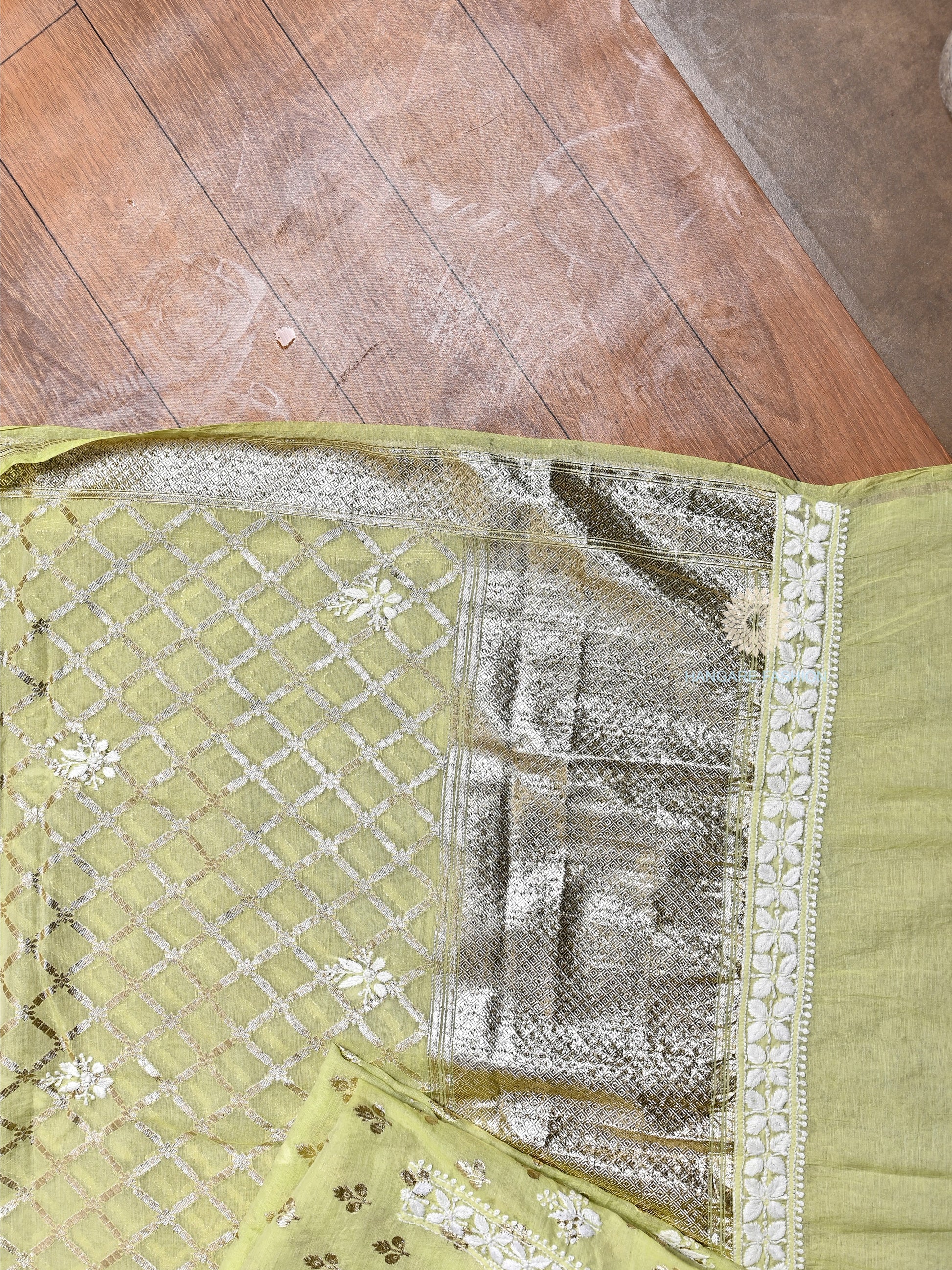 Color: Pista Green with white and golden detailing