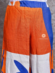 Pant Design: Wide-leg pants with bold abstract orange and blue print