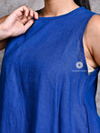 Top Design: Sleeveless royal blue top with asymmetric high-low cut