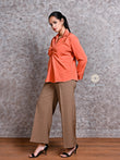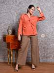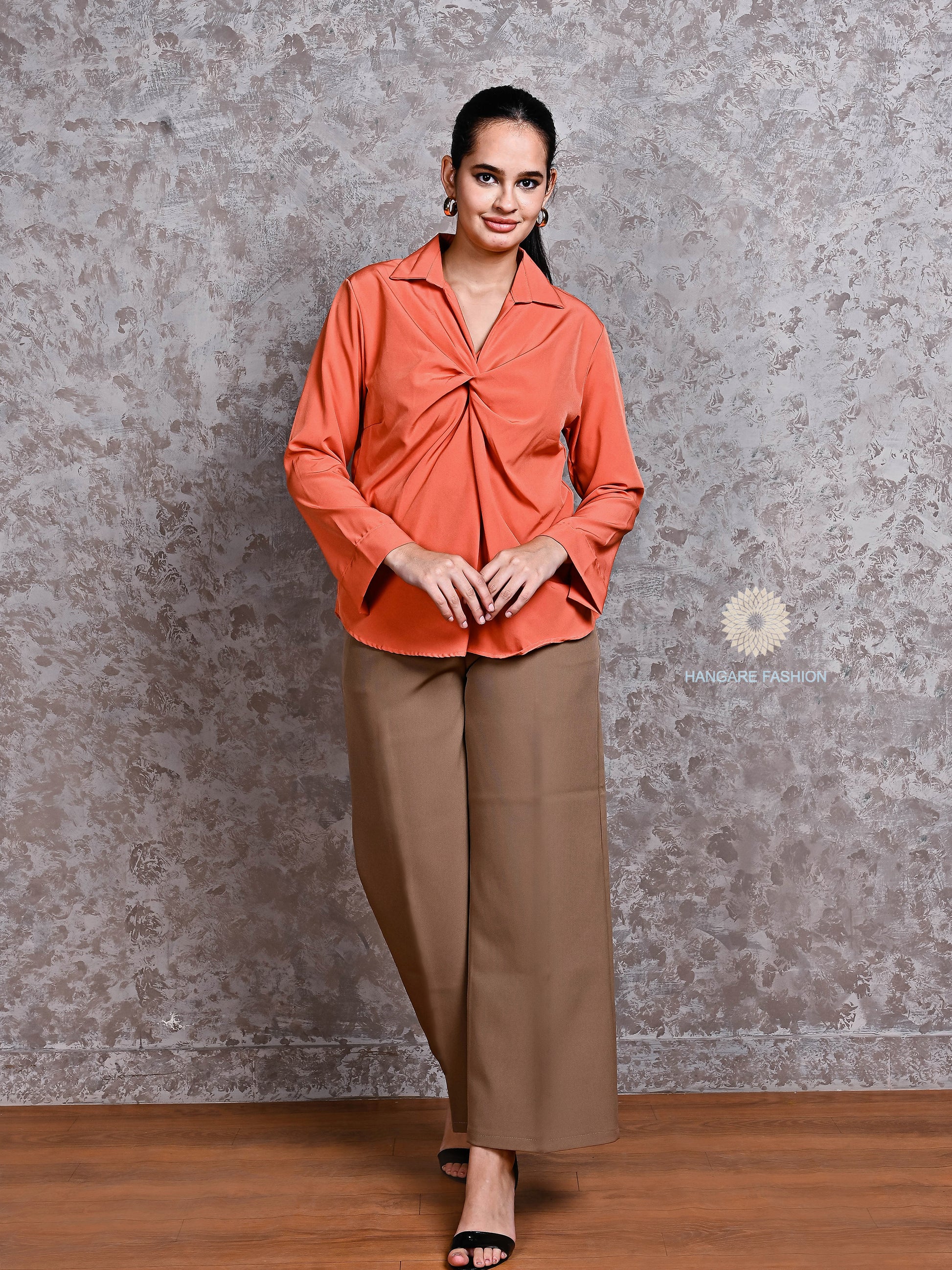 Rust Orange Twist-Knot Crepe Shirt – Contemporary Western Top
