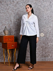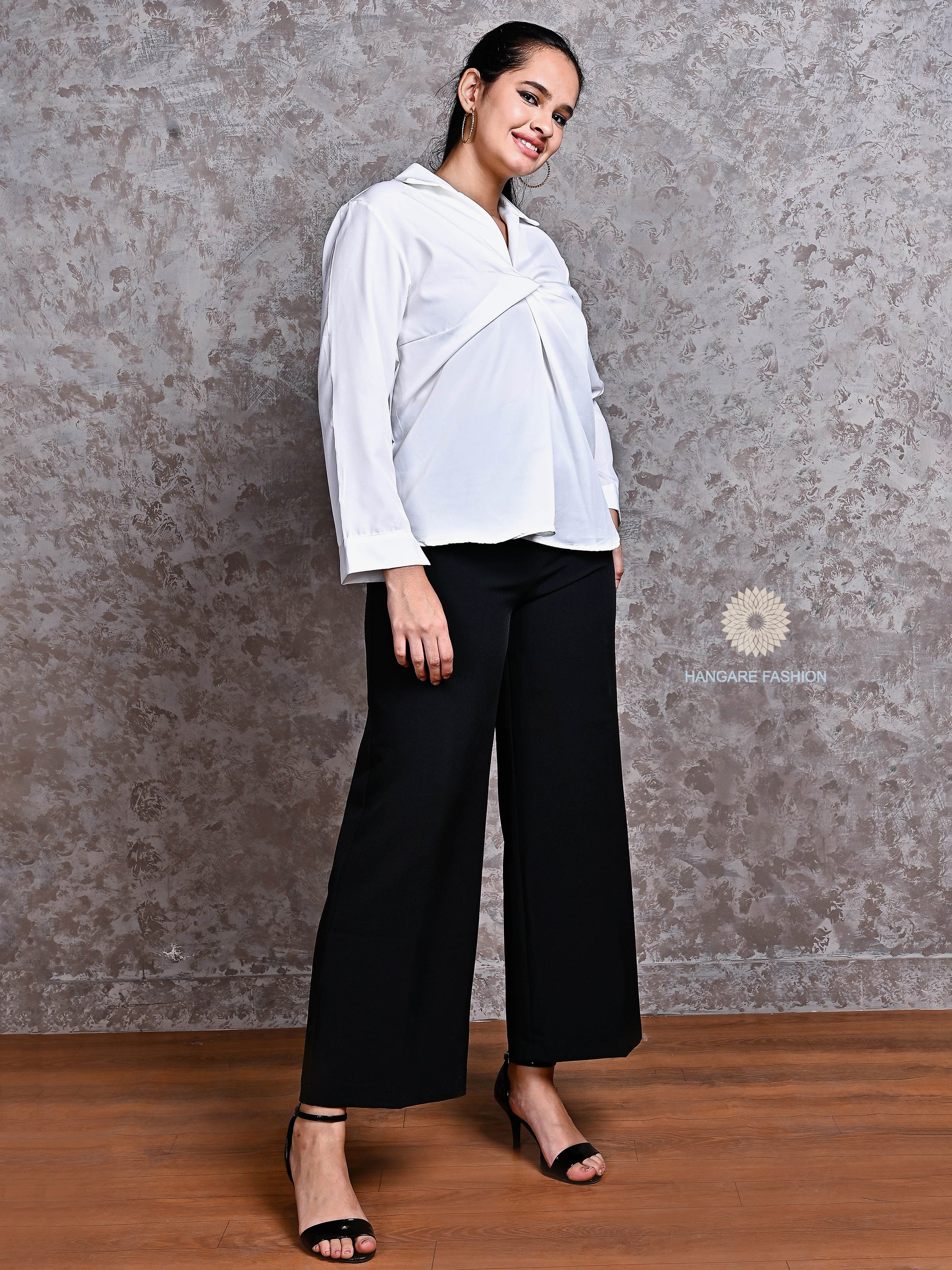 Solid Black Cotton Lycra Wide-Leg Pants – Versatile Western Bottom