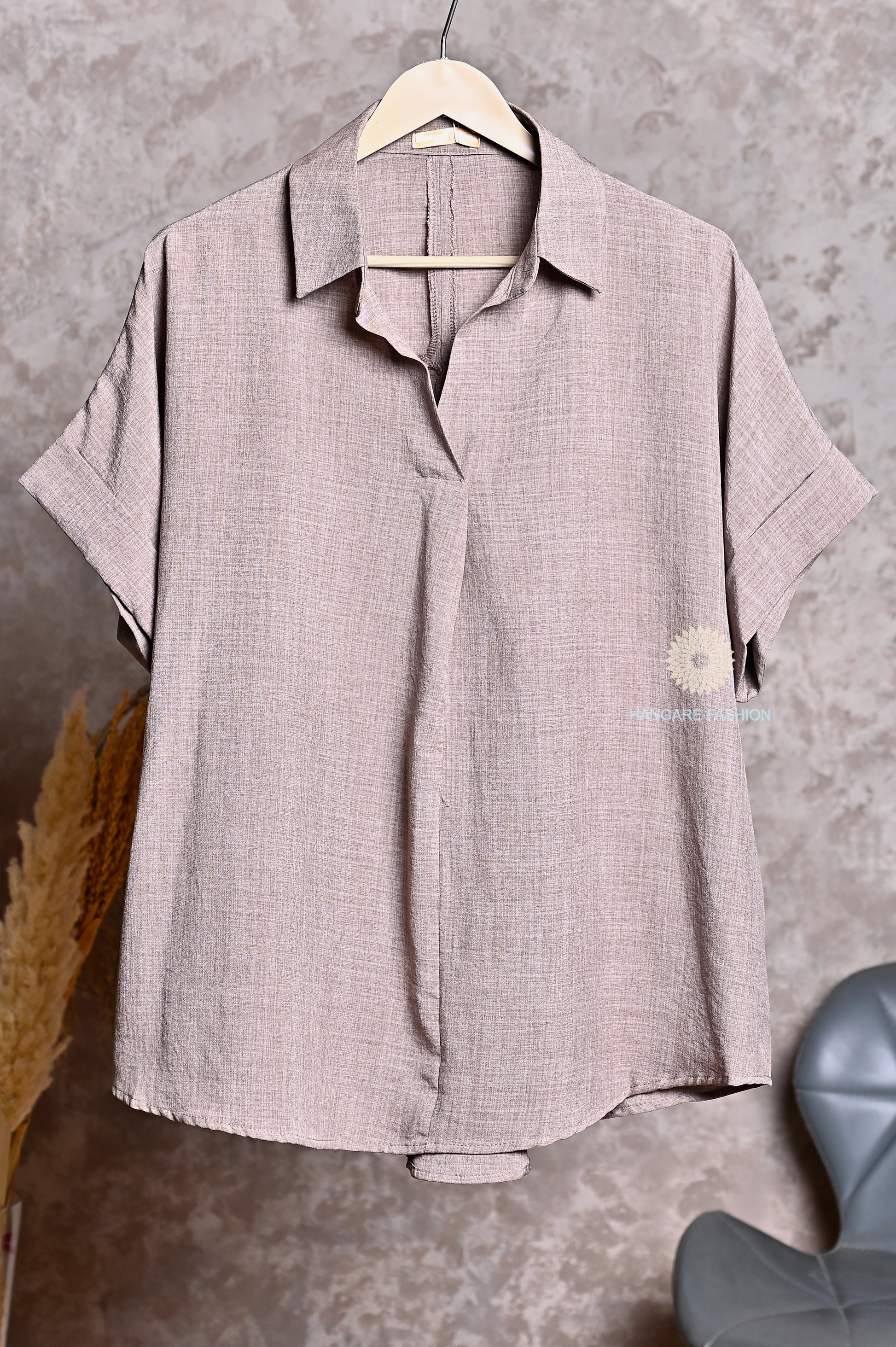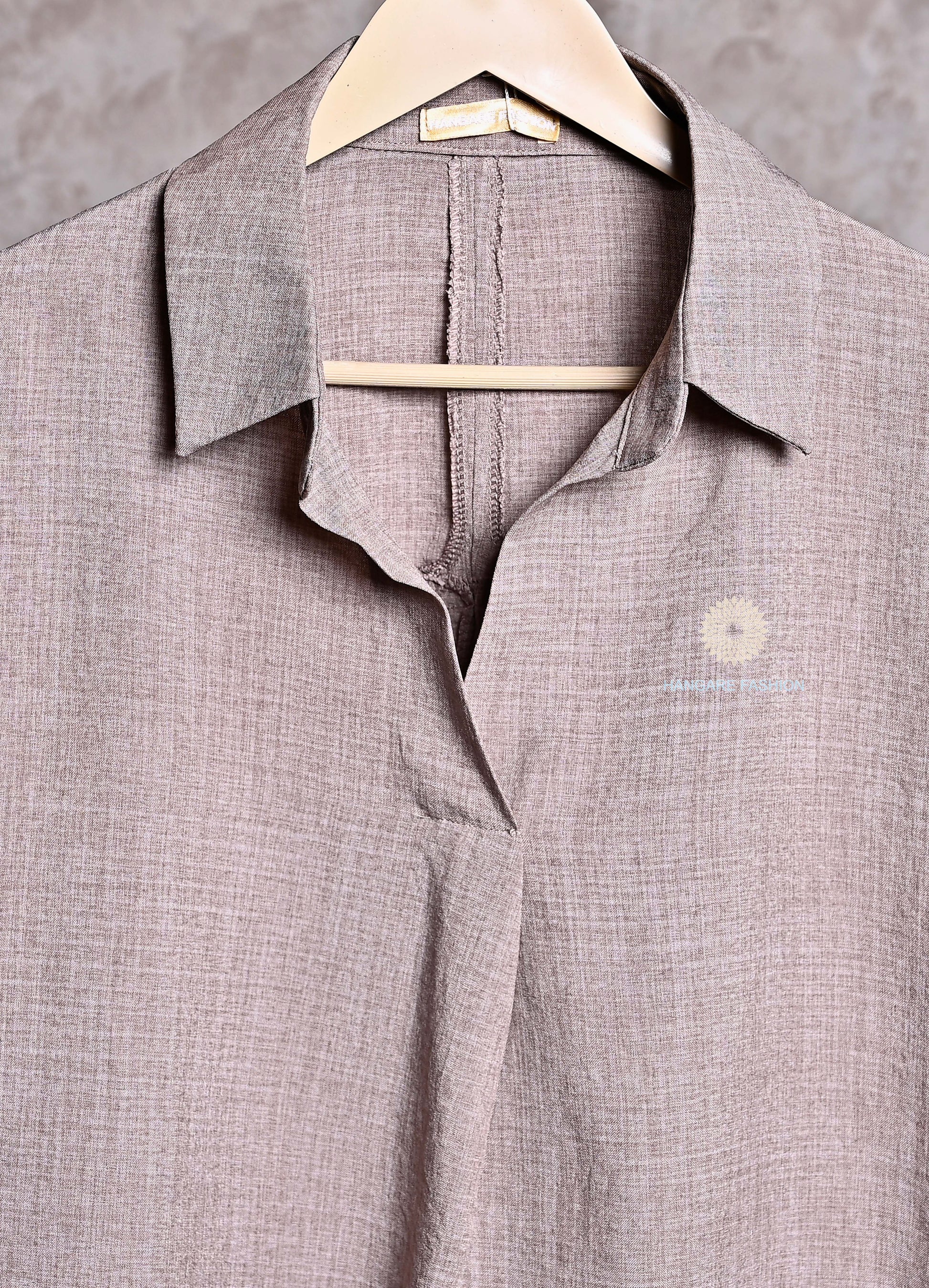 Stone Taupe Blended Cotton Oversized Shirt – Casual Chic Essential