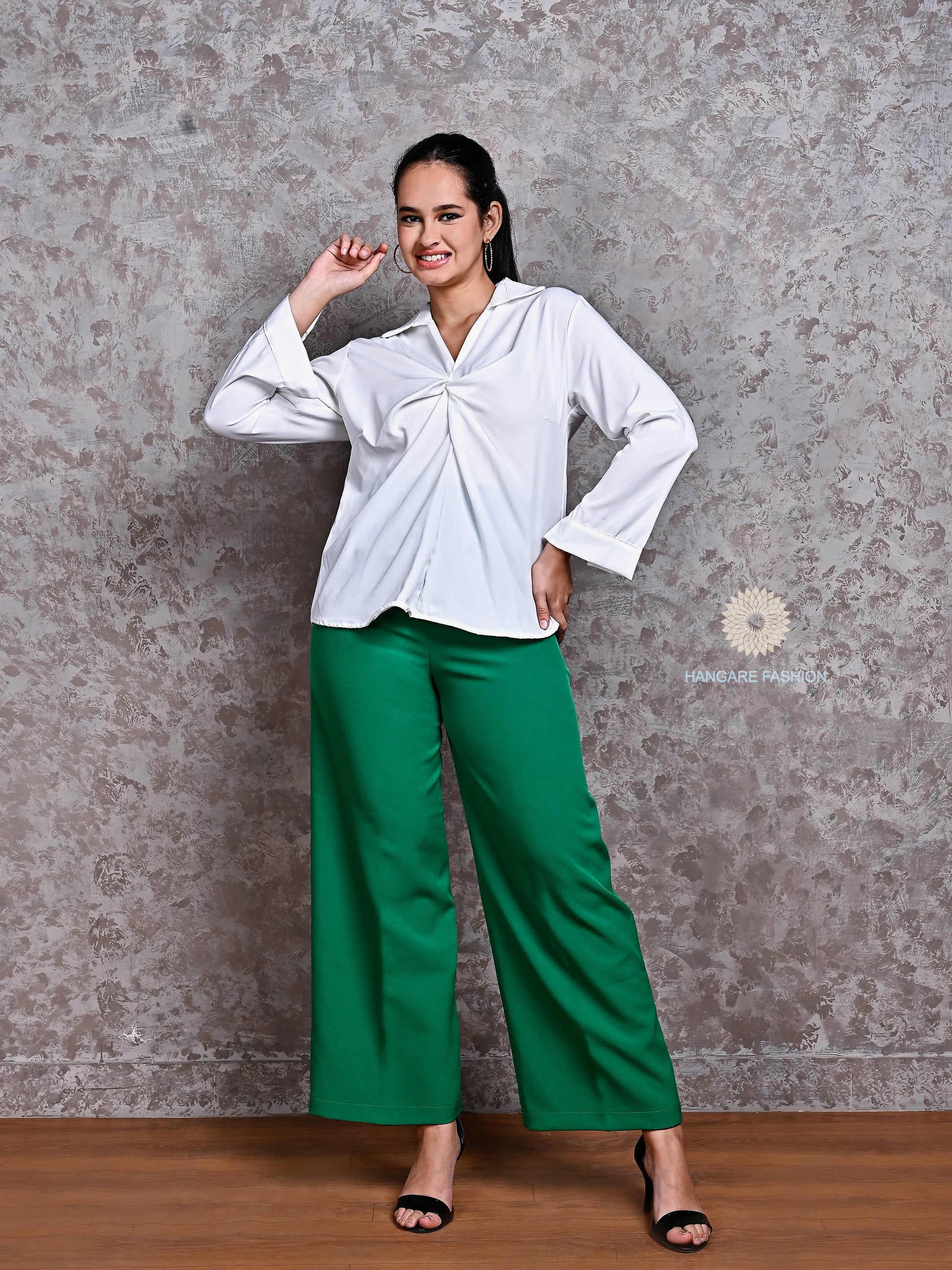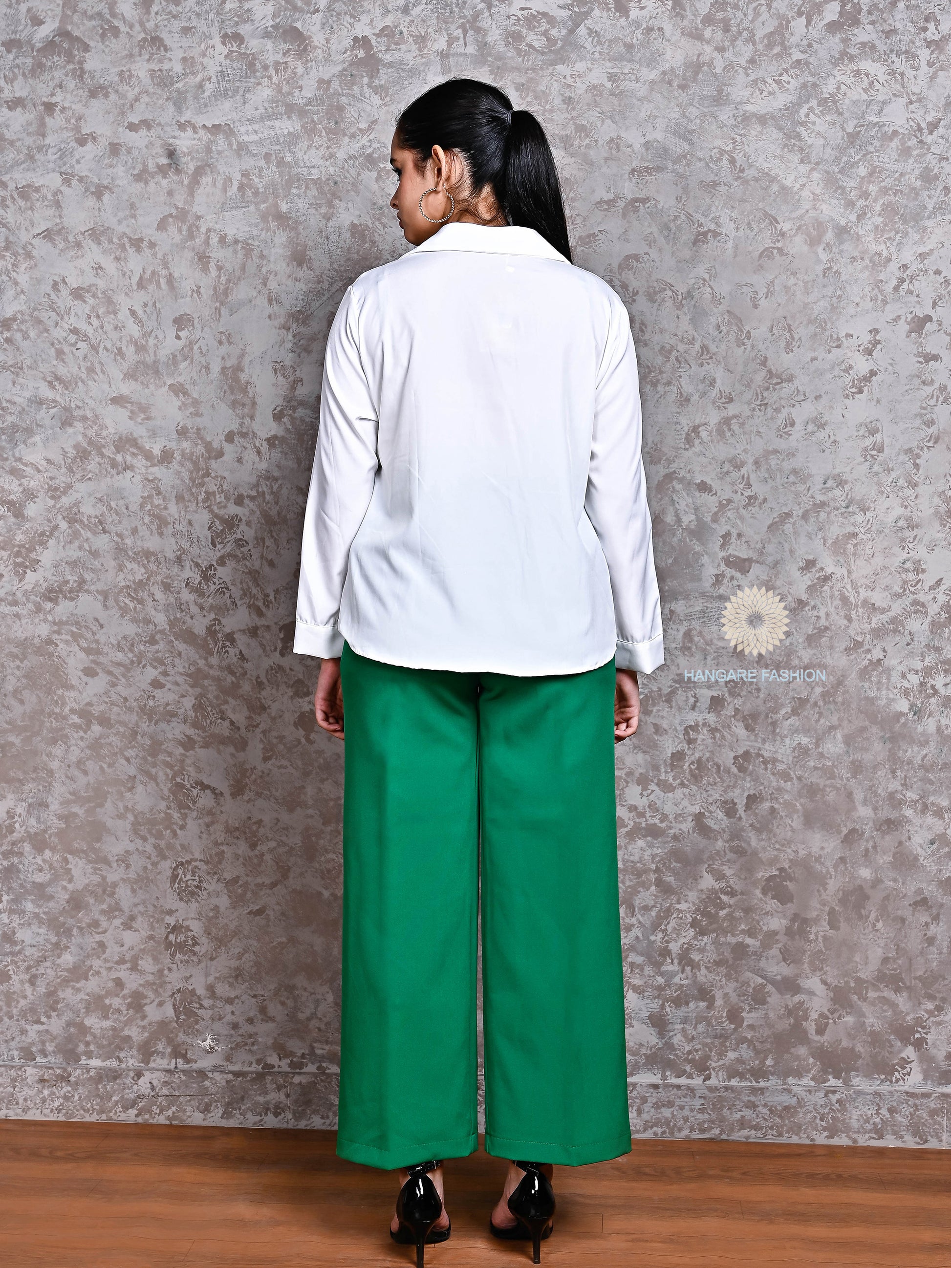 Green Wide-Leg Trousers – Bold and vibrant color elevates the entire outfit.