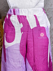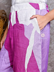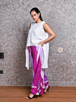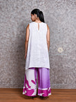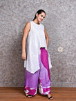 White Asymmetric Linen Shirt with Purple Abstract Linen Pants