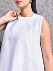 Top Style: Sleeveless, asymmetrical hem, airy white linen
