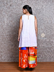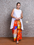 White Linen Asymmetric Shirt with Orange Multicolor Linen Pants