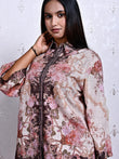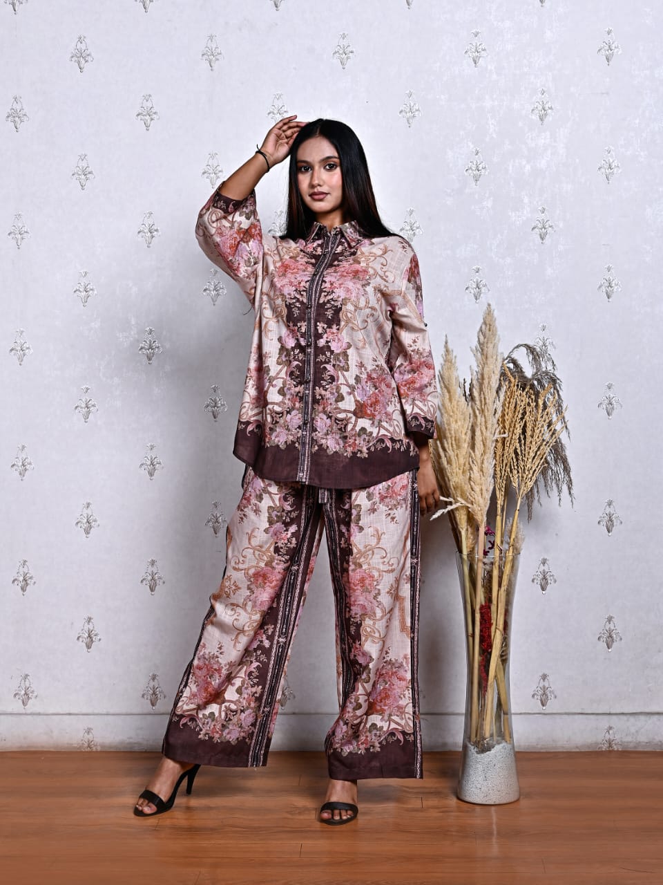 Women’s Cotton Linen Printed Co-ord Set – Floral Brown & Pink
